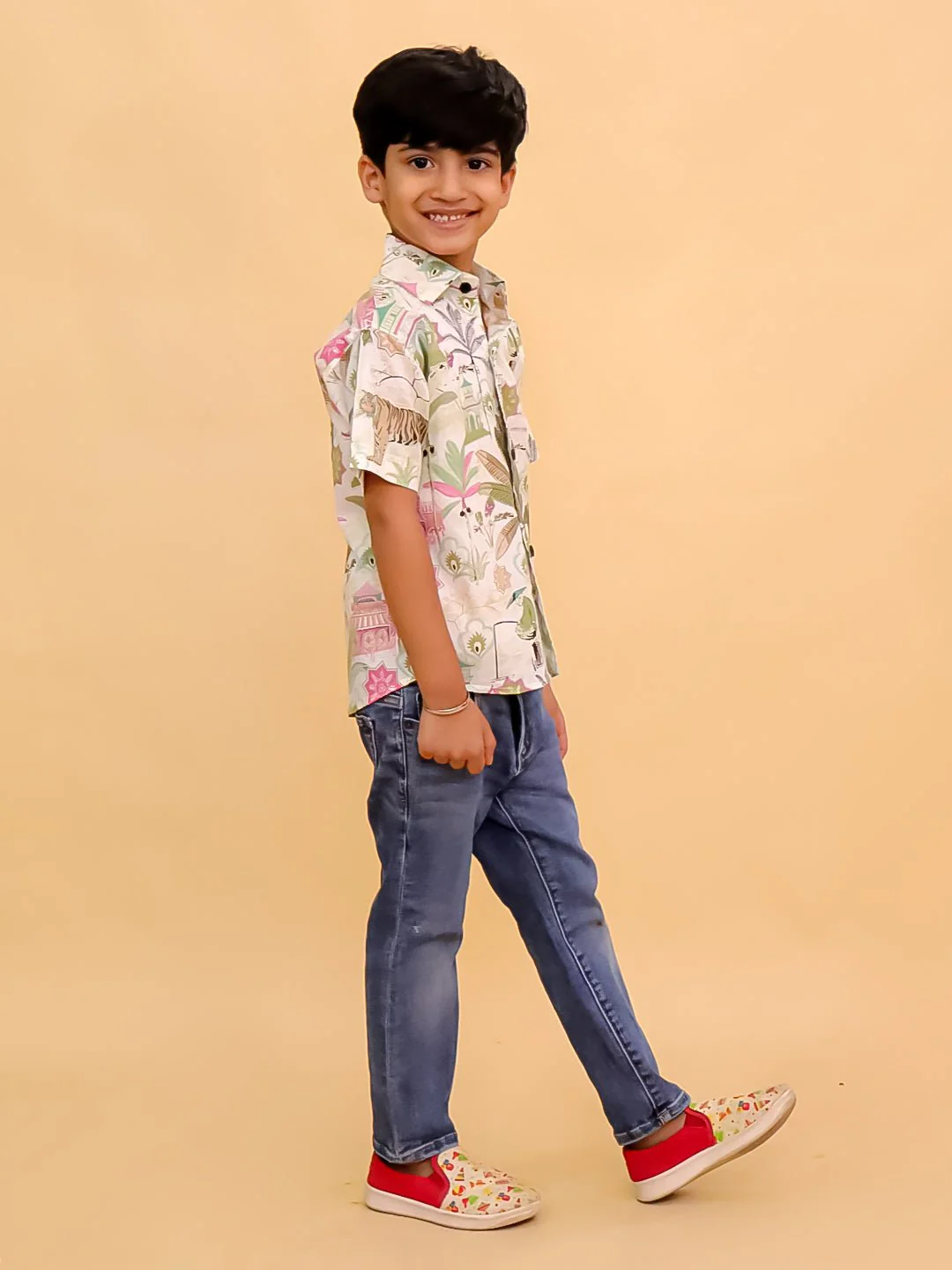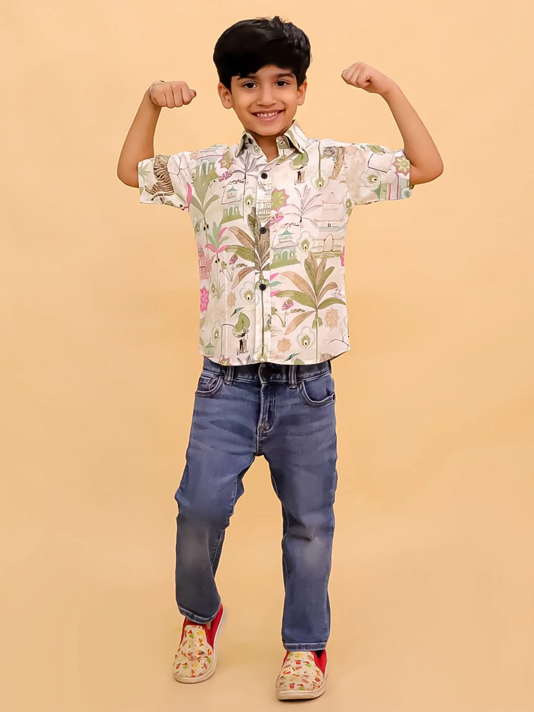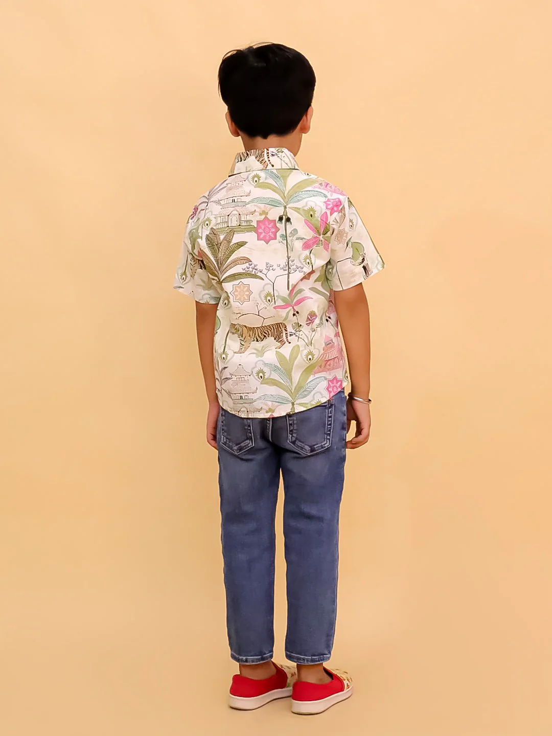 - Emerald Essence Boys Floral Print Jacket And Kurta Pajama Set