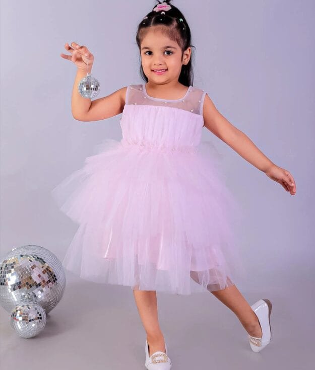 Pink Layered Tulle Girls Dress